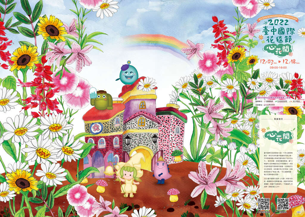 本屆花毯節透過可愛療癒的精靈,以隱喻的方式引領遊客,