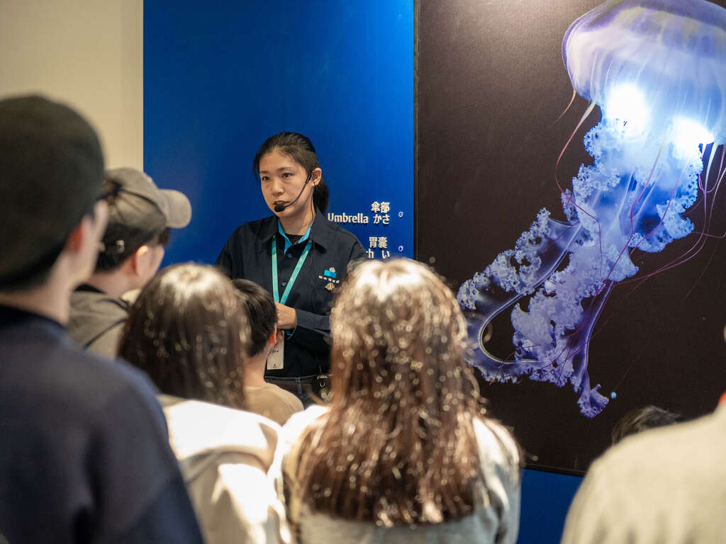 除此,館內也同步推出深度科普活動,透過「台灣白海豚導覽」解說導覽與「水母科教活動」,帶領大小朋友們一步步走進蔚藍秘密中:水母科教活動將帶領民眾深入了解水母不為人知的一面外,還有機會體驗水母Q軟有趣的觸感;而在2F白海豚區,台中海洋館將藉由解說及現場 QA 互動,深入了解「粉紅超跑」(白海豚)的生存現況。透過眾多精彩豐富的行程,邀請大小朋友與我們一同重新認識這片熟悉又陌生的藍色世界。