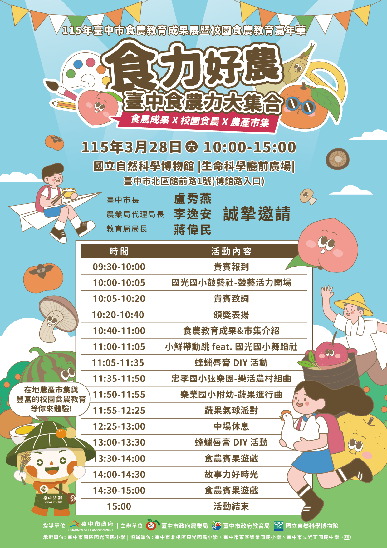 (一)活動名稱:115年臺中市食農教育成果展暨校園食農教育嘉年華。