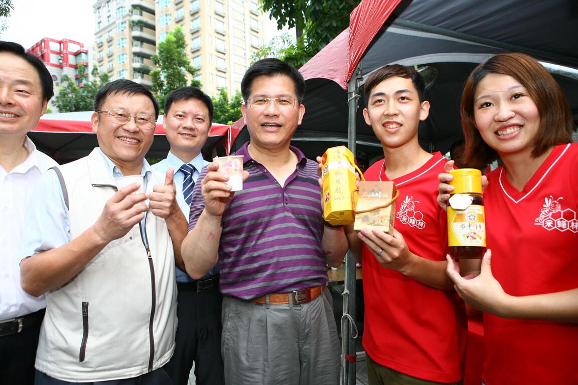 看到現場也有青年農民設攤展售,林市長說,市府積極推動「青年加農‧賢拜傳承」計畫,並獲蔡英文總統大力支持;青年加入農業,農業就有未來,透過青年的活力及創意,運用網際網路或其他行銷方式,能夠解決過去農業遇到的產銷失調問題,因此,他全力支持年輕人投入農業,也期待台中青農創業計畫可以推廣至全國。