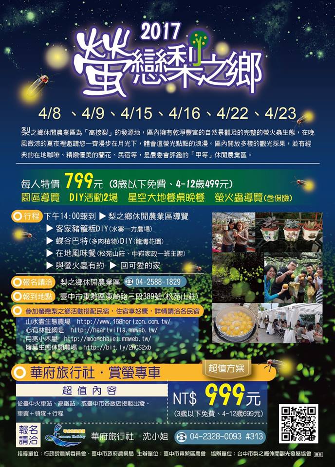 賞螢專車報名請洽 華府旅行社沈小姐 04-23280093-313