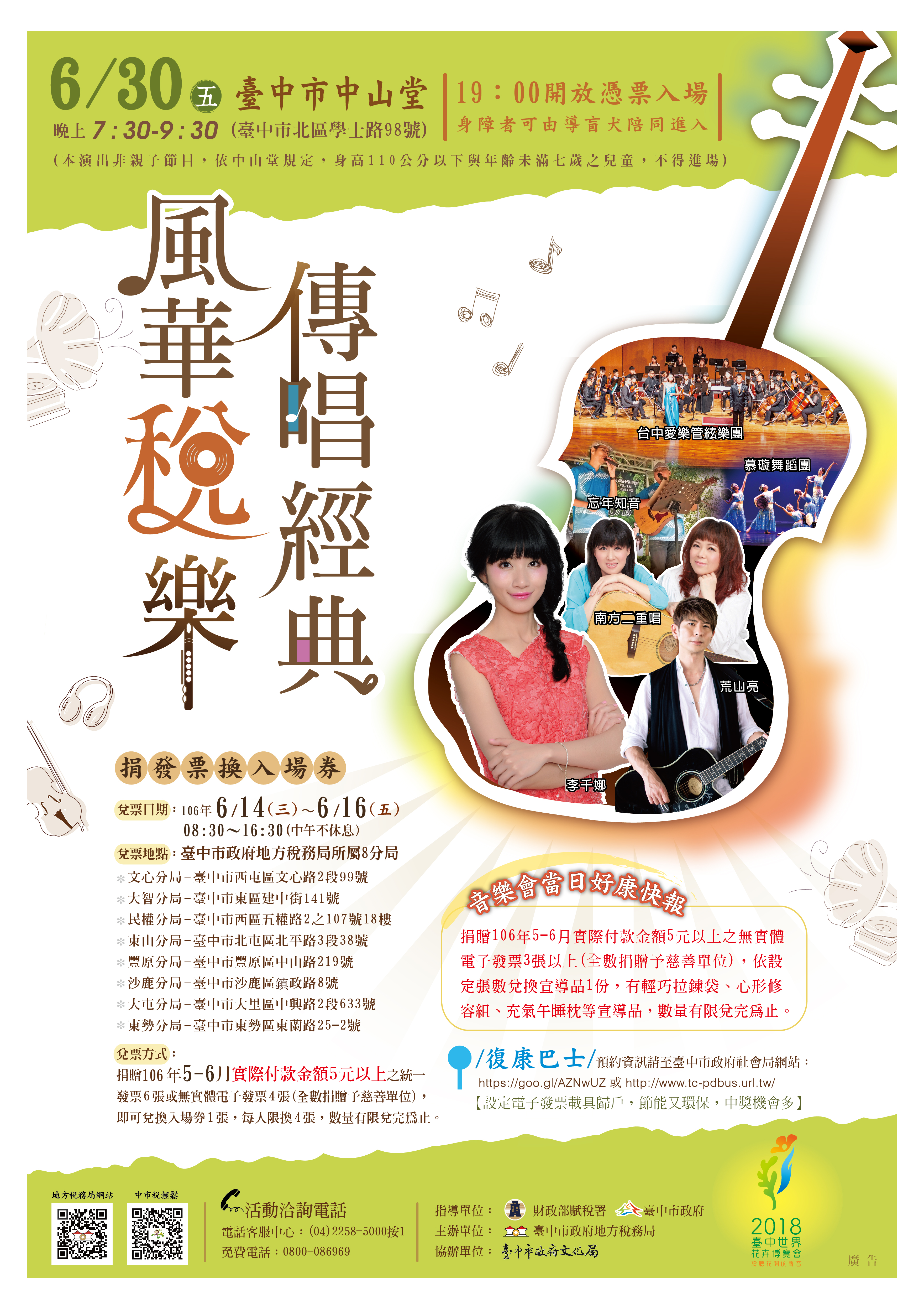 「風華稅樂 傳唱經典」音樂會 14日起捐發票換入場券