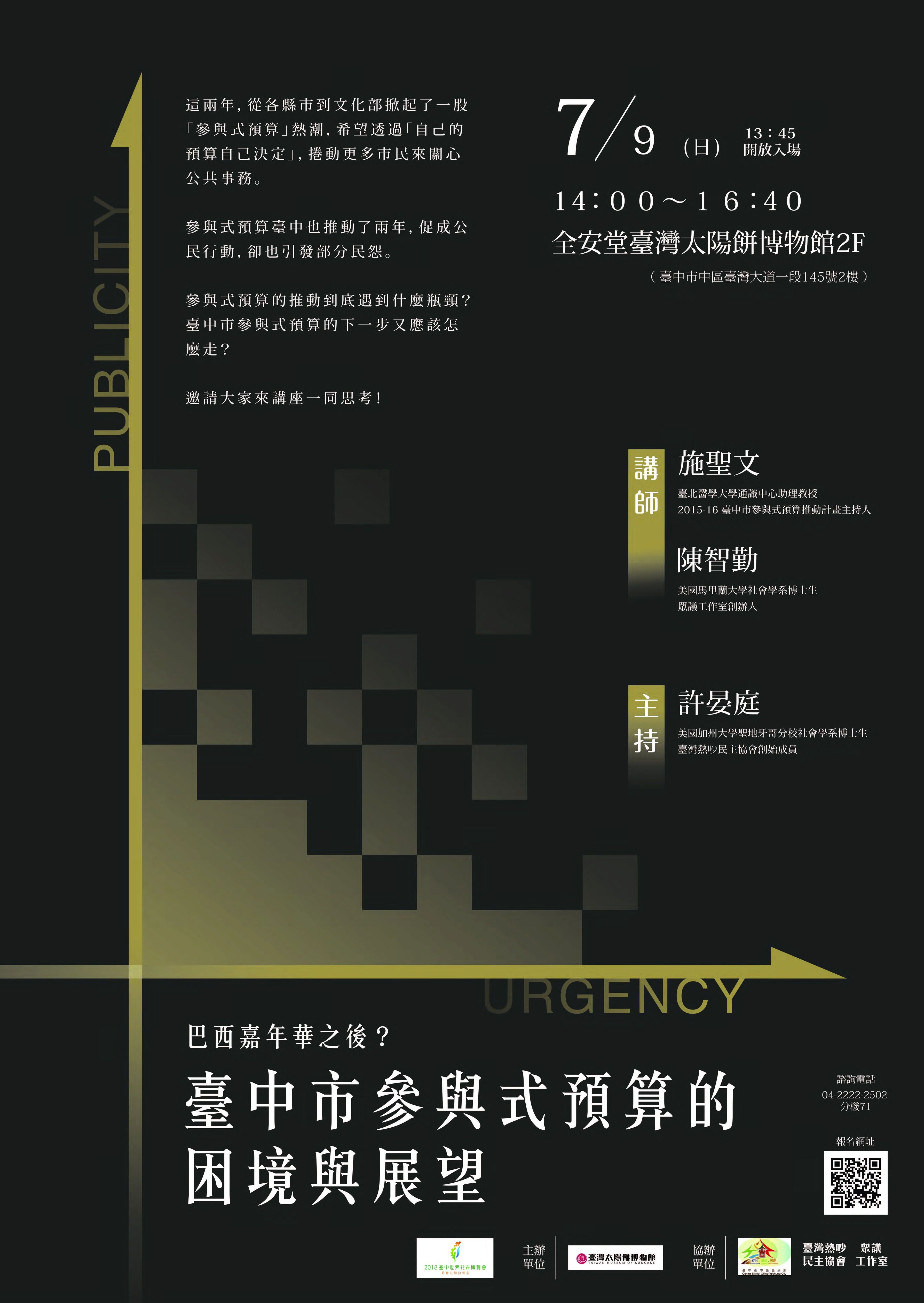 講師:施聖文|臺北醫學大學通識中心助理教授;2015-16臺中市參與式預算推動計畫主持人