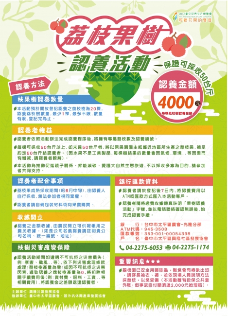 【活動1】荔枝農遊巴士、【活動2】荔枝採果、【活動3】荔枝果樹認養