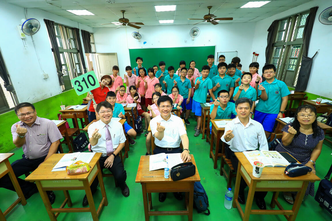公車抵達學校後,林市長特別關心學生的學習情形,由於國三生將參加會考,他為大家加油打氣,並贈送紀念品給同學留念。此外,他也為明年將登場的台中世界花卉博覽會宣傳,邀請同學與家人一起前往共襄盛舉。