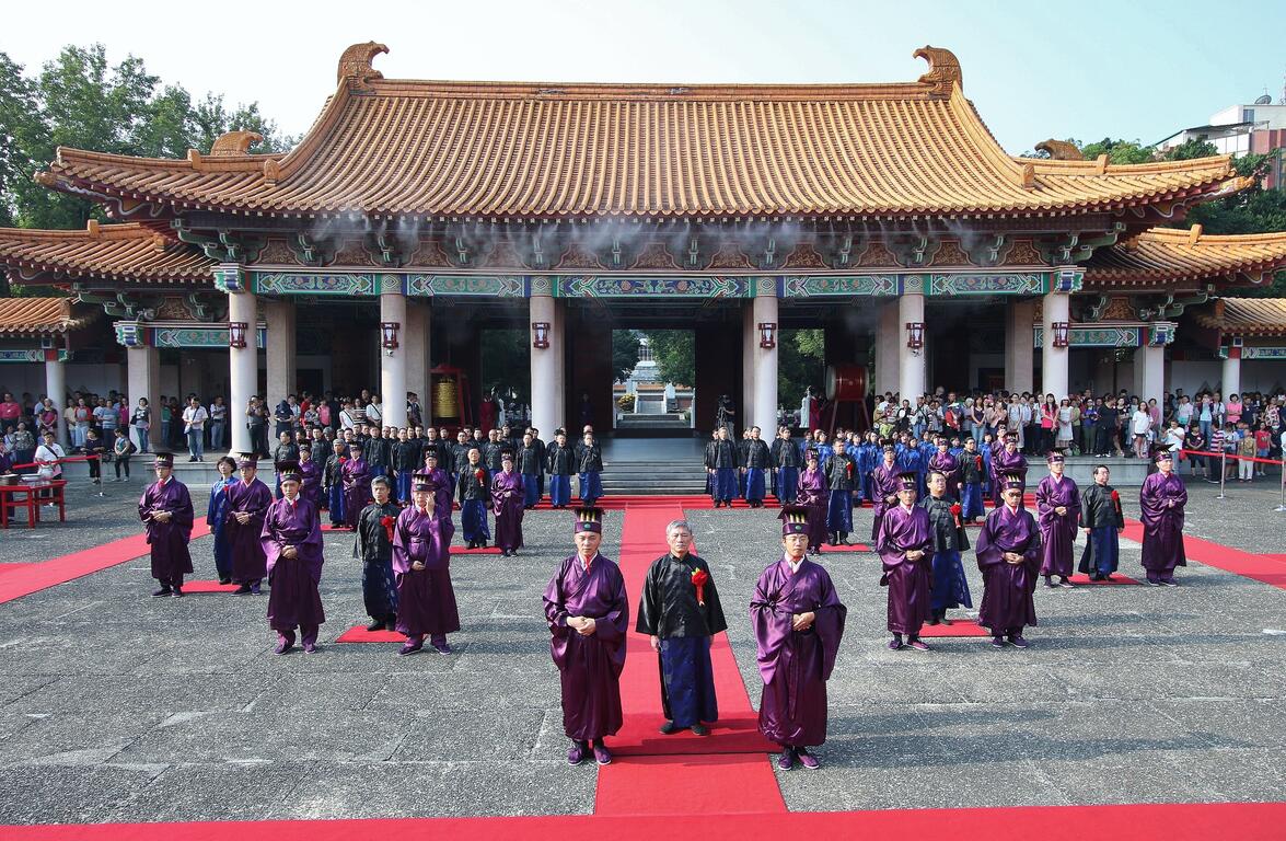 今(28)日教師節,台中市政府舉辦祭孔大典,紀念至聖先師孔子誕辰2567週年,典禮遵循古禮進行,由副市長張光瑤擔任正獻官、民政局長周永鴻擔任糾儀官,市府各機關首長則擔任分獻官,與祭人員均穿著長袍馬掛,行禮如儀。張副市長期盼活動每年都能舉辦,讓民眾能了解過去歷史及尊師重道,傳承優良傳統文化。
