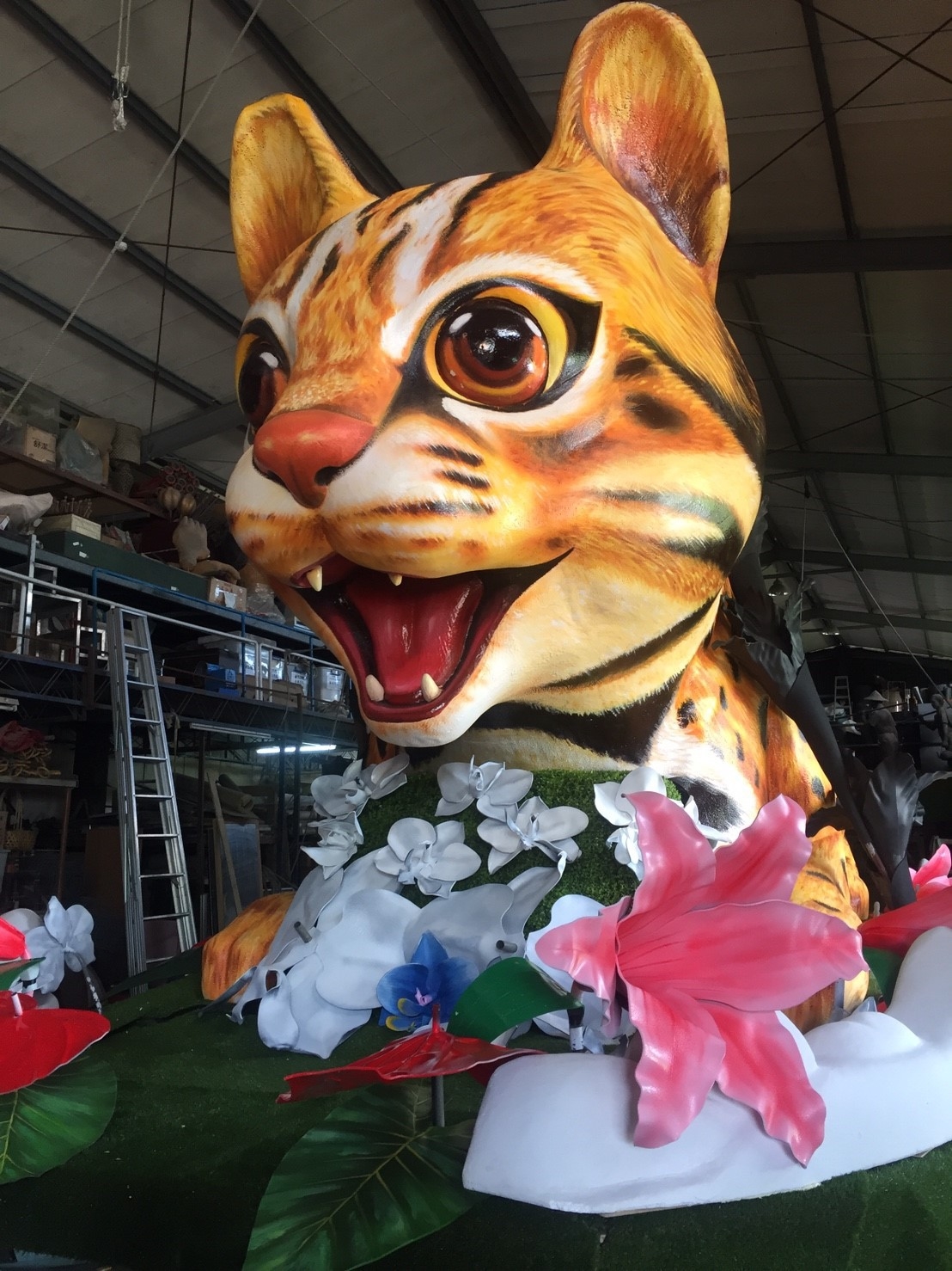 日前石虎家族中的來虎弟弟,也前往花車製作團隊探班,頑皮的他拿著上色刷子幫石虎媽媽及歐米馬刷牙,逗趣模樣萌翻眾人。紙風車表示,花車製作團隊集結雕塑、彩繪、裝置藝術等各界專才,因吉祥物主體為大型裝置,大家每日來回爬梯子約上百趟,齊心打造兼具創意、藝術、故事性的作品。
