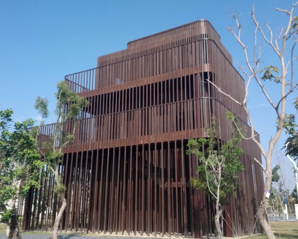 台中水湳中央公園12感官體驗中的「自我體驗區」,是一座直立式深咖啡色木條構造組成的4層樓瞭望台,日前已建置完成。利用木造空間交疊交錯,讓民眾行走在構造物中,猶如在層層迷宮中摸索,充滿探險趣味;而登至最頂層的瞭望台,則可將中央公園寬闊美麗的景緻一覽無遺。
