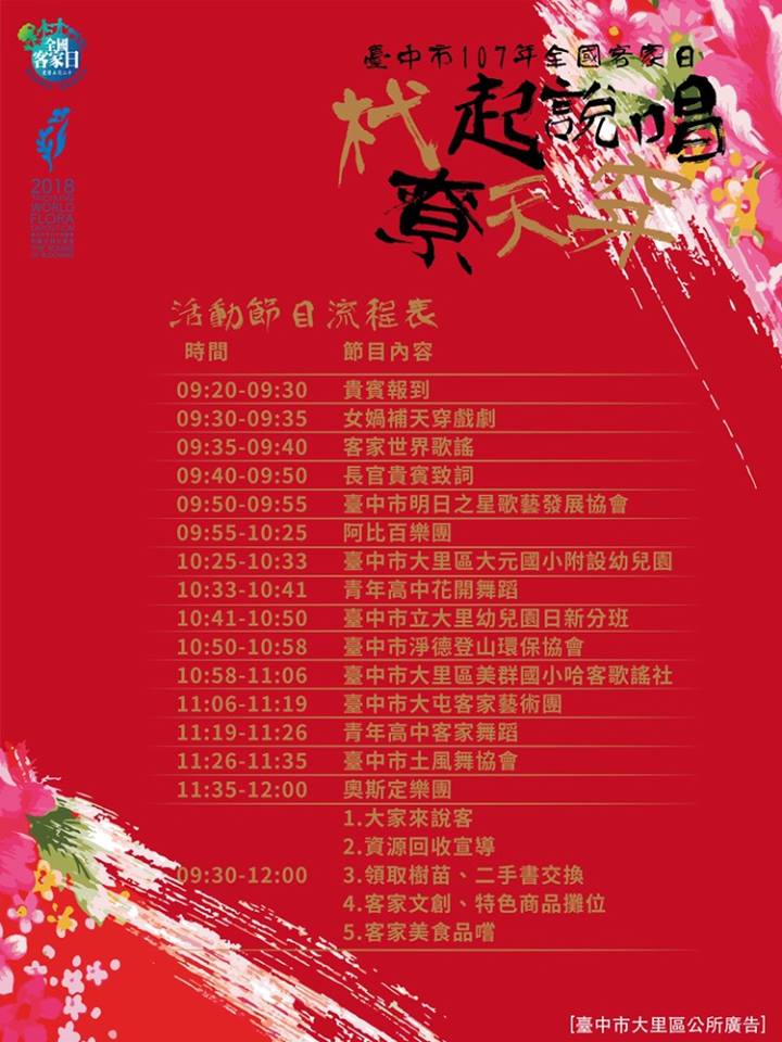 三、活動安排阿比百樂團、青年高中舞蹈科、臺中市大屯客家