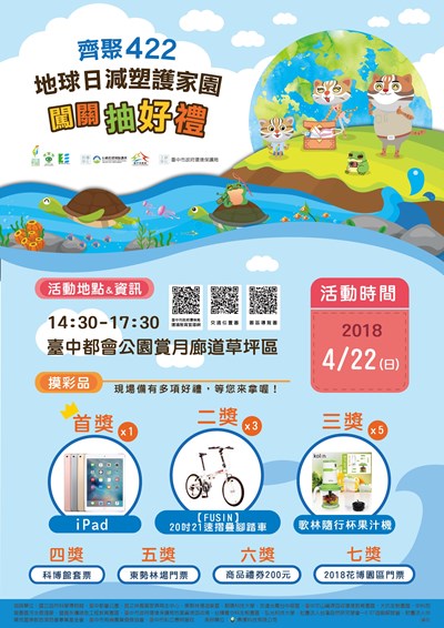 現場攤位也包括「環境教育闖關區」、「低碳減塑農村集」及「永續發展宣導區」,運用不同形式的環境教育闖關遊戲、小農減塑市集的推廣及環保DIY體驗,提供民眾更多友善環境食材的選擇,營造健康無毒的永續家園。參加闖關遊戲的民眾除可兌換精美小禮物外(限量400份,送完為止),還可參加摸彩活動(備有7樣好禮),最大獎項為iPad WiFi 32G平版電腦哦!詳細資訊可至台中市政府環保局網頁https://bit.ly/2FJzp5J查詢。