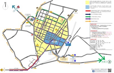 大甲分局將大甲鎮瀾宮周邊劃分為兩個區域,包含行人徒步區域以及禁止汽車進入區域,行人徒步區域為三民路以東、中山路一段以西、文武路以南、光明路以北,此區域禁止所有汽車、機車進入;大甲區經國路以東、中山路一段以西、育英路(中山路至雁門路段)與大甲街(雁門路至仁愛街路段)與新政路(仁愛街至經國路段)以南、經國路與中山路一段南端交叉路口以北為禁止汽車進入區域。另外,清水區大甲溪橋南端至大甲區經國路與文曲路口南下車道,4月22日8時至20時內側車道調撥為北上方向行駛。
