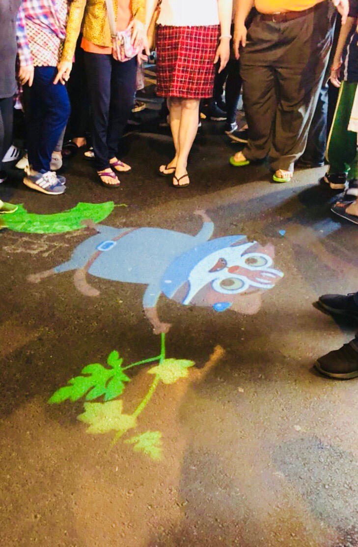 花博吉祥物逢甲夜市投影現身 遊客驚豔
