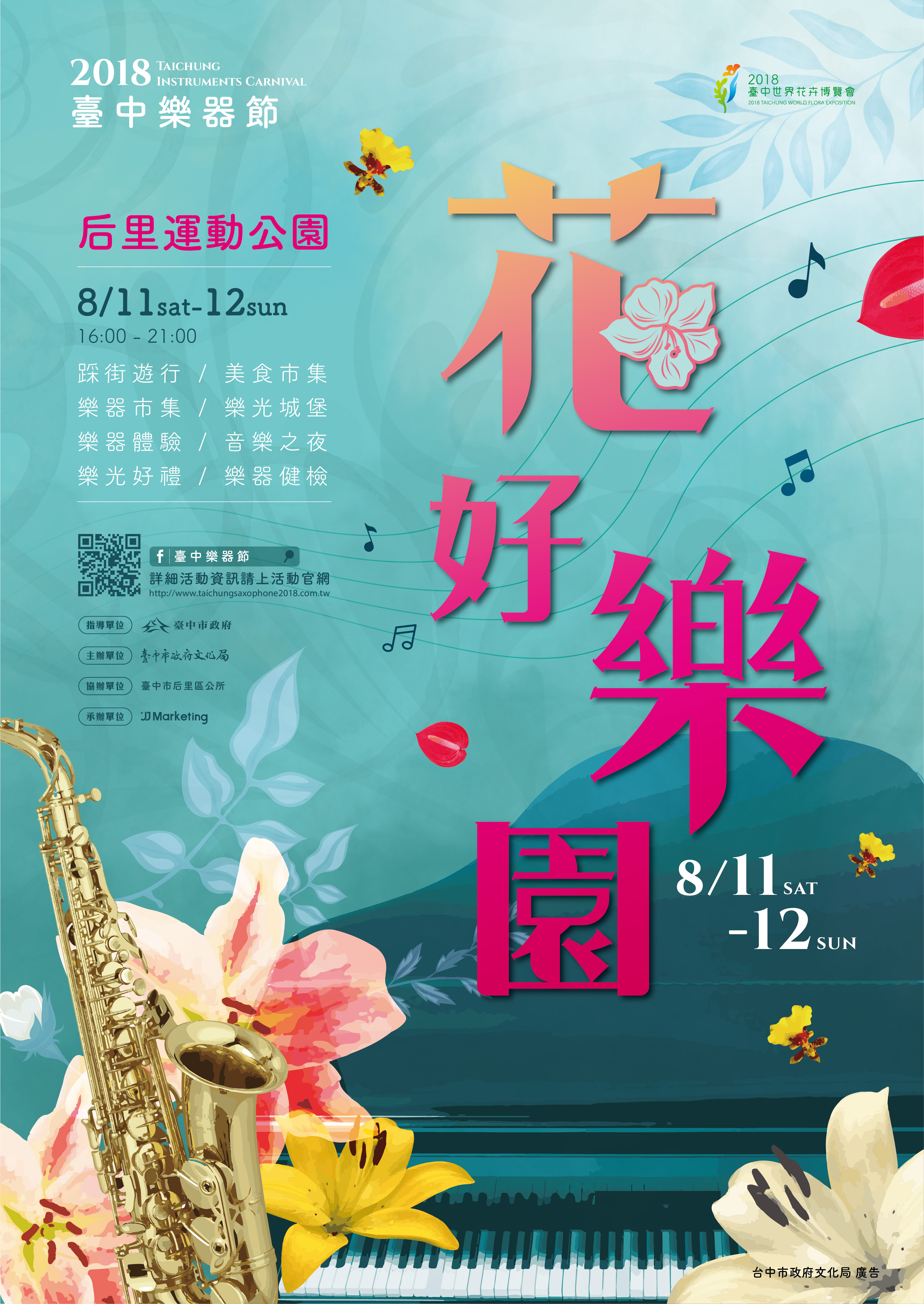 「2018台中樂器節」將於8月11日及12日在后里運動公園熱鬧展開,活動除有遊行、音樂晚會、樂器市集、闖關等,還有摸彩抽好禮,讓大家有機會將后里出產的薩克斯風、長笛、爵士鼓及小號等樂器帶回家,歡迎民眾呼朋引伴到后里來場音樂饗宴,感受在地人文風情;而8月12日下午3時至7時,在台中市柳川人行道、中華路人行道將舉辦「2018川川市集x尋味社企x炒蛋市集」,共有65攤創意品牌攤商、14攤青創攤商,邀您一同前來享受一場盛夏的午後約會!