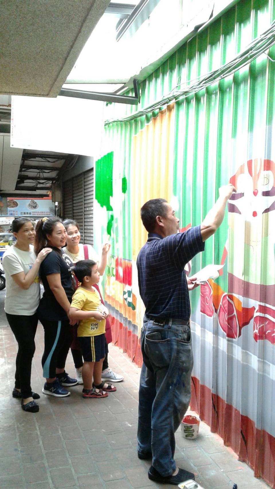 台中在地畫師彩繪第三市場巷道 花博吉祥物融入市場意象吸引人氣
