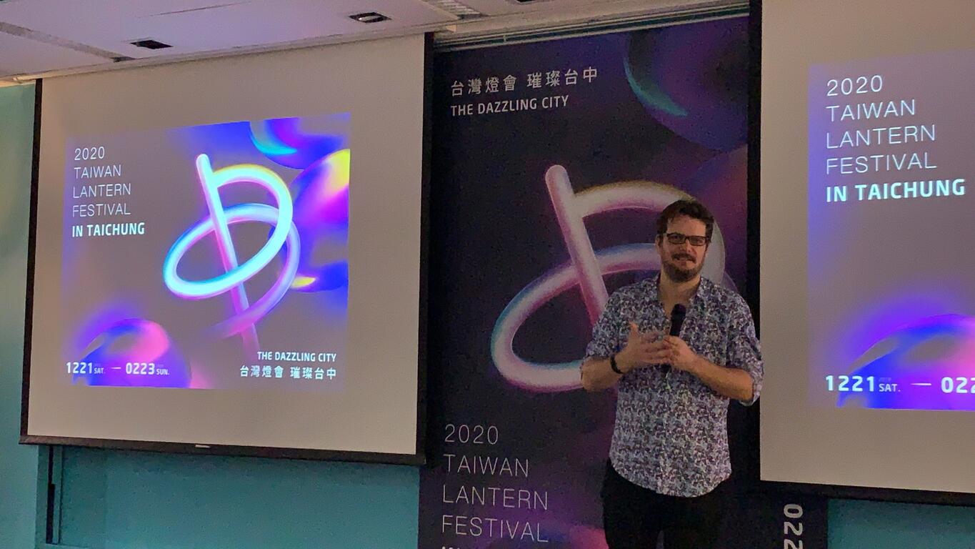 市府觀旅局今日於台灣大道市政大樓,舉行2020台灣燈會台中市識別系統(CI)發布記者會,在觀旅局長林筱淇、民政局專門委員吳東燿、薩巴卡瑪國際有限公司設計總監Anthony J. Soames等人見證下,揭曉了明年台灣燈會意象Logo標誌。