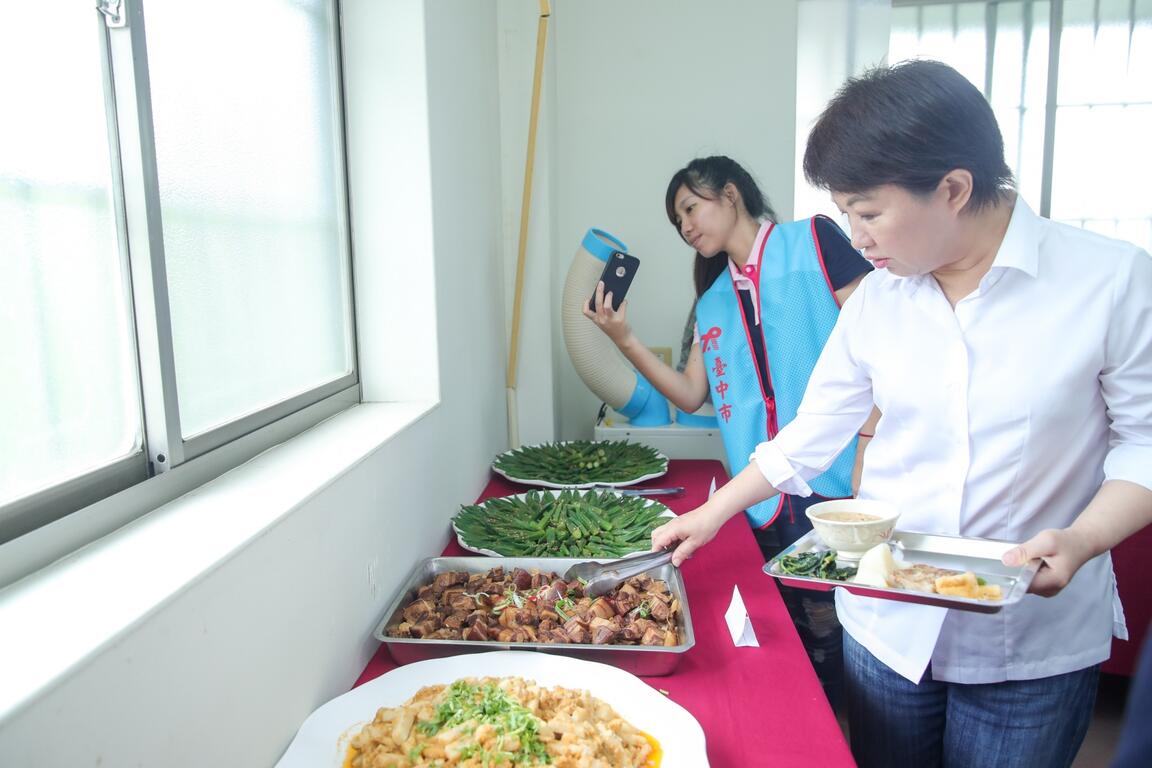 接著,盧市長與當地家政班媽媽們共進午餐,家政班媽媽端出多道親手做的創意竹筍料理,包括竹筍粥、筍干控肉、筍香珍寶、金沙麻竹筍等在地美味,盧市長品嘗後讚不絕口,直呼「好吃!」