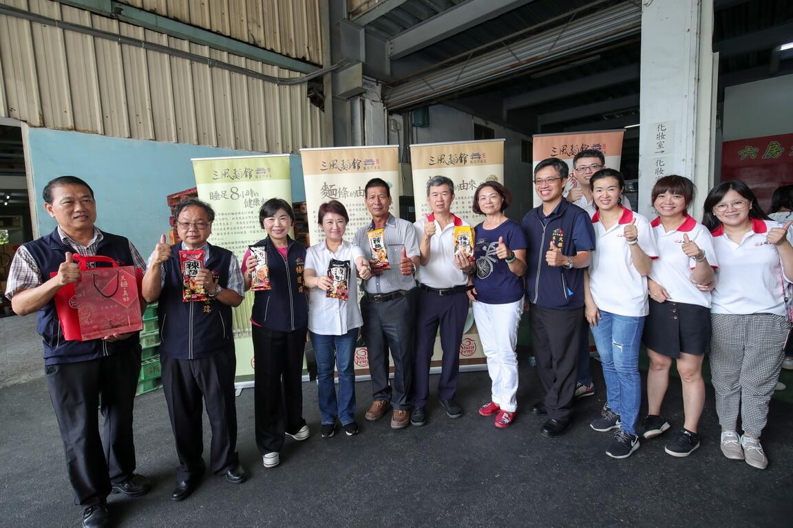 今日市府移師大雅區召開行動市政會議,會後盧市長率副市長楊瓊瓔、民政局長吳世瑋、法制局長李善植、農業局長蔡精強、研考會主委曾能汀等人參訪三風製麵。