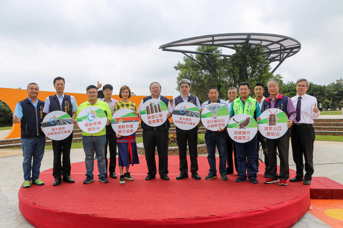 市府觀光旅遊局今(30)日舉辦「大甲鐵砧山風景特定區挑戰型自行車道暨雕塑公園開幕活動」,由外埔國中與日南國中自行車隊,用熱情活力騎動台中市首座挑戰型自行車道,也宣告鐵砧山雕塑公園重新啟用;陳副市長、市議員李榮鴻、施志昌、藝人劉香慈、觀旅局副局長陳育正、大甲區長顏金源皆出席見證。此外,議長張清照、市議員吳敏濟也派代表到場關心。