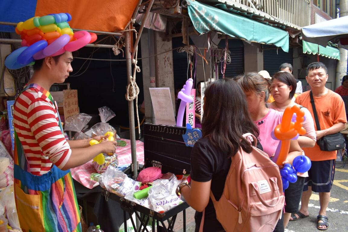 此外,今日也舉辦「伯公祝壽歡樂購」,民眾只要在市場內指定攤位消費指定商品,滿額將贈送攤位好禮優惠,共有18家攤商熱情參與,優惠內容買愈多,送愈多;活動加碼「祝壽來市禮」,在大肚市場消費滿50元可集1點,集滿10點即可免費兌換街頭藝人造型氣球,數量有限,送完為止。