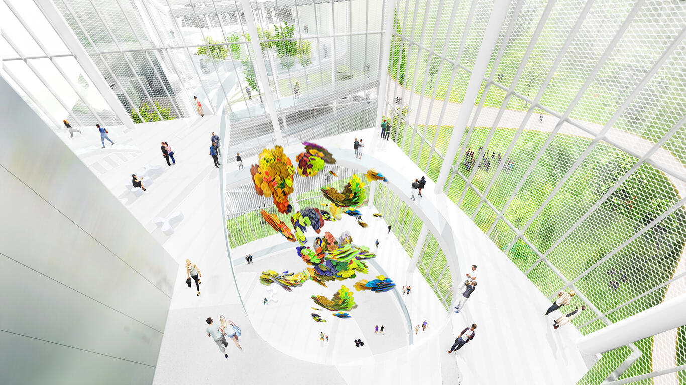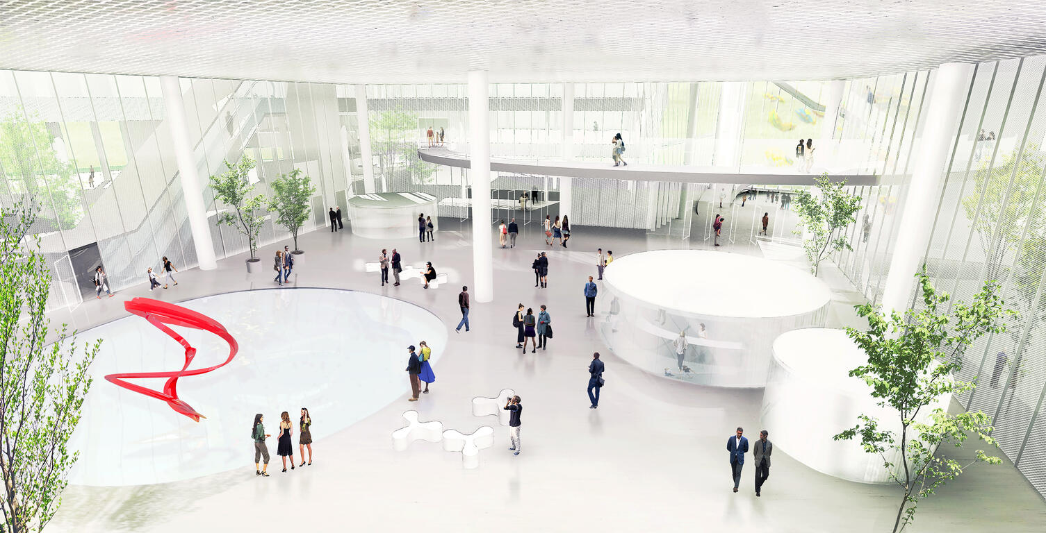 此外,圖書館的部分,為避免不同年齡層民眾相互干擾,設計以棟為主題,區隔出兒童、青少年及樂齡專區,各自擁有獨立空間,並與其他專區相鄰,資源共享;至於美術館空間設計概念,則希望民眾可優游漫步在各空間角落,隨處皆有精美的視覺饗宴,因此在展示場的規劃設置平面式或上下立體的串聯空間,並設計4米、6米、10米、甚至27米多樣高度的展廳,配合不同的策展人或藝術家進行展示空間佈設,達到最完美的藝術呈現。