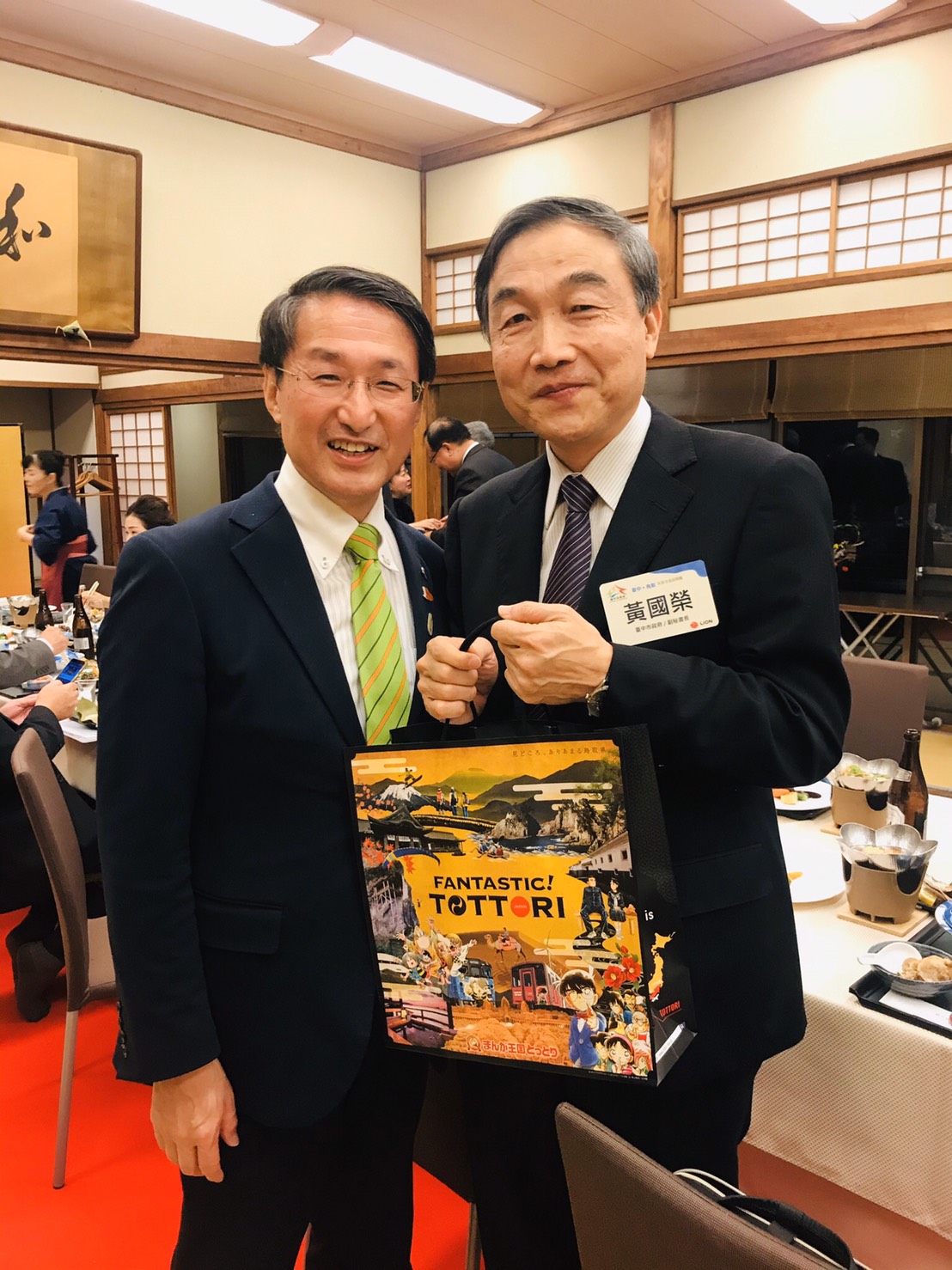 代表市府參加這次訪問活動的副秘書長黃國榮表示,此行除參加探索鳥取嘉年華,並將與鳥取縣市政府、議會及當地民間團體進行交流,希望拓深兩地在農業、觀光、文化及經貿等多項合作交流,延續兩地友好情誼;黃副秘書長並將盧市長的信函面交平井知事,盧市長在信中除祝賀「探索鳥取嘉年華」活動圓滿成功外,並邀請平井知事於明年2月率團前來台中參加2020台灣燈會。