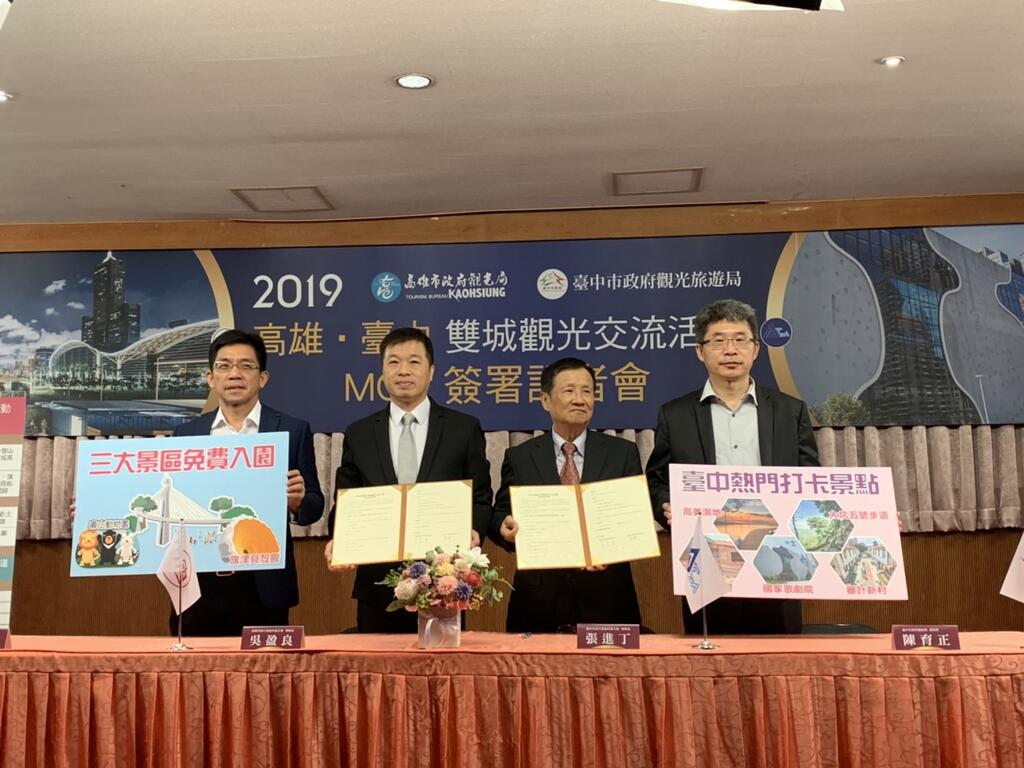 為拓展台中市旅遊市場及活絡觀光產業,台中市政府觀光旅遊局與高雄市政府觀光局攜手合作,推動「雙城觀光交流」,整合台中市及高雄市兩地觀光資源,共同研擬團體旅遊優惠方案,並促成兩地旅行公會於今(6)日共同簽屬合作備忘錄,鼓勵所屬旅行業者組團互訪,共創雙贏局面。
