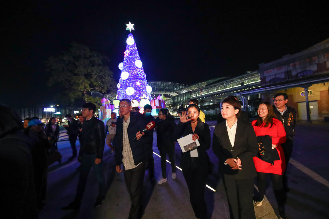 「2019台中耶誕夢想世界」今(3)晚在台中火車站前廣場進行開幕試燈,市長盧秀燕前往關心測試情形,在迪士尼「TSUM TSUM」輕快音樂燈光秀中,14米高的「TSUM TSUM聖誕樹」、10米高大型薑餅屋裝置一一亮起來,許多來往的民眾也紛紛驚呼「好美!」搶先體驗熱鬧的耶誕氛圍。