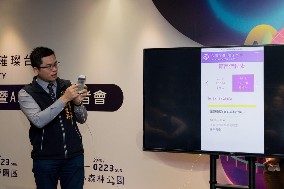 台中市政府研考會說明,根據以往台灣燈會官網瀏覽紀錄,民眾最關心的就是「交通資訊」和「展演活動資訊」,因此這次特別設計在首頁就能快捷點閱這兩項資訊,給民眾超直覺體驗。研考會吳主委現場也親自操作,展示燈會官網大眾運輸、停車場等交通訊資訊,以及全區地圖、各燈區、台中住宿旅遊資訊等諸多便民功能。