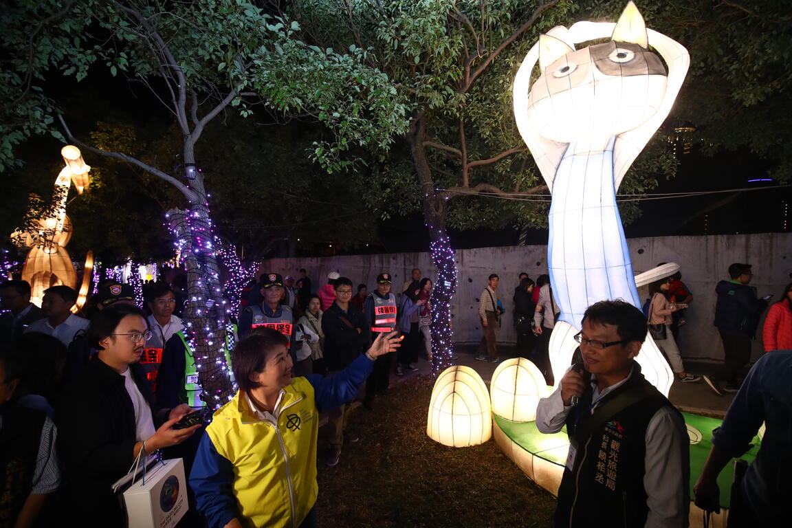 盧市長隨後前往賞燈,經過12生肖燈區時,特別停在「貓」花燈前,分享把貓納入燈區的緣由。她說,玉皇大帝下令普召天下動物選拔12生肖,消息傳出後,驚動了貓、鼠這對好朋友,貓叮嚀老鼠應選時提醒他,但不講信義的老鼠卻偷偷起床不辭而別,貓因此錯過選拔,貓、鼠也因此結下樑子,這次特別把貓納入,就是為了讓兩個好朋友和好。
