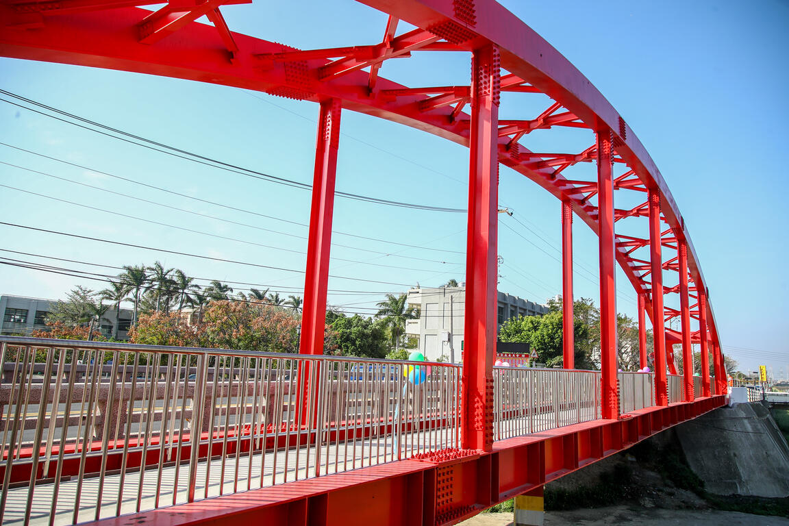 市長盧秀燕表示,此座橋位於沙田路與觀光路交接處,上、下班人車爭道,險象環生,建設局與龍井區公所研議,在原有橋面旁興建一座鋼構橋樑,今年4月動工,11月順利完工,藉由人車分道,大幅提升人行安全,感謝民代在預算上的支持。