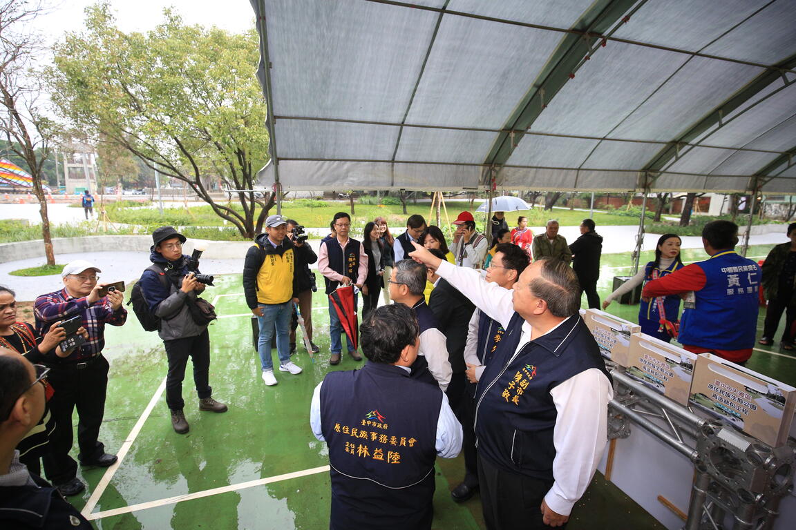 今天完工典禮包括陳副市長、建設局長陳大田、觀旅局長林筱淇、原住民族事務委員會主委林益陸、立法委員洪慈庸、市議員林榮進、吳顯森、台中市原住民關懷促進協會理事長沈春美等人均到場見證,弘光科技大學與國立台灣體育運動大學的原民社學生也帶來精采演出,歡迎民眾前來享受全新建設的公共空間。