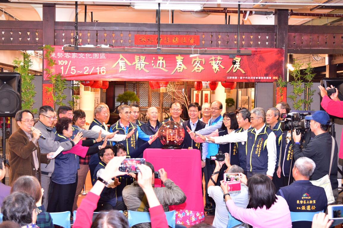 今日開幕式邀請到東勢農會中阮班帶來精彩客家樂曲,並由書畫家陳銘儀帶領來賓賞析書畫作品,介紹其創作理念。包括客委會江主委、東勢區長翁培真、東勢區多位里長出席共襄盛舉,立法委員江啟臣、市議員冉齡軒、蔡成圭也派代表到場,氣氛熱鬧。