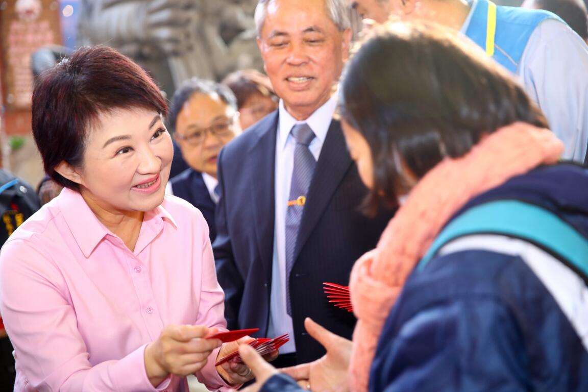 今(25)日是大年初一,台中市長盧秀燕上午8時前往東區樂成宮發送印有「鼠運亨通」的市長小紅包,並接連到南區醒修宮、北區元保宮、北屯區紫微宮、潭子區潭水亭發送。今年的小紅包以「錢鼠」造型象徵財運到來,並加值升級為10元硬幣,吸引許多民眾起了個大早排隊討吉利。盧市長逐一發送,並與市民朋友親密合影,展現十足親和力。