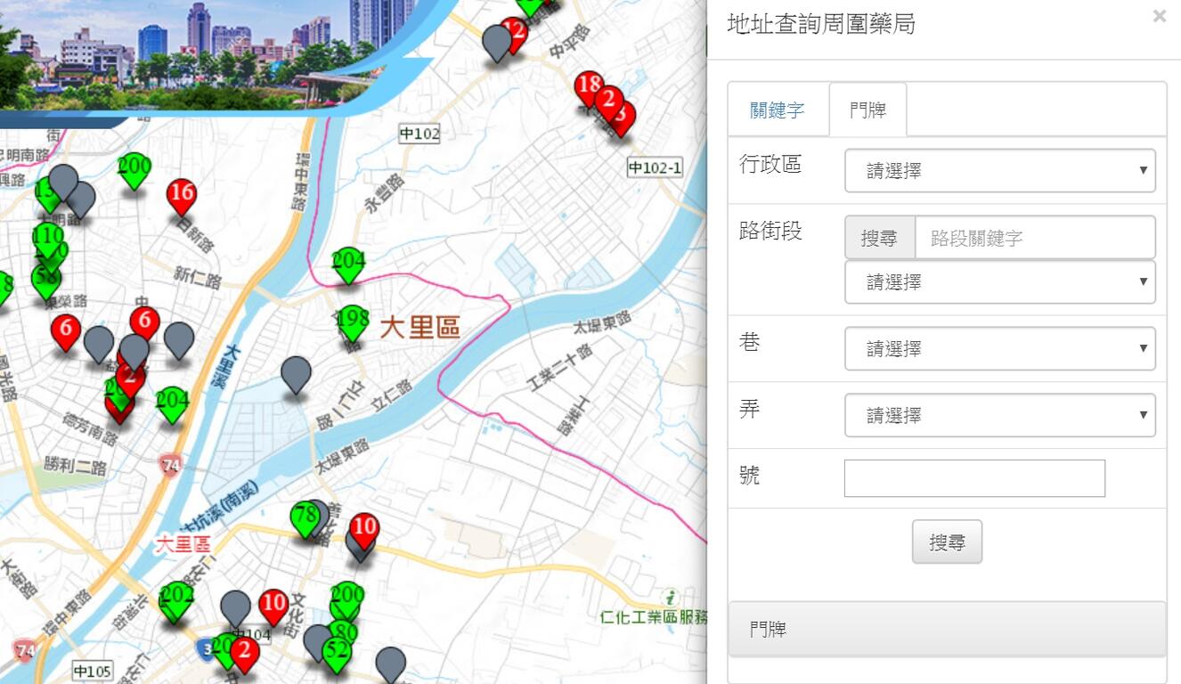 研考會主委吳皇昇表示,在資訊中心的努力下,「台中即時口罩地圖」除了可以在地圖上清楚看到本市健保藥局位置外,也可透過輸入地址查詢居家所在地附近的特約藥局,圖標立即顯示藥局名稱、電話、地址,以及該藥局的成人、兒童口罩的剩餘數量,吳主委指出,為了給民眾更直觀的貼心服務,這個平台還利用不同顏色來代表口罩存量的多寡,操作十分便民。