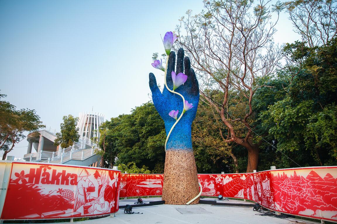 2020台灣燈會在后里花花步道建置「漫遊客家庄燈區」,主燈為「手護客家」,呈現傳統客家女性沾滿藍染痕跡的手,傳遞奉獻、堅毅的精神。台中市政府客家事務委員會表示,五支手指象徵大甲溪上游的支流水源,手臂是河流主幹,有如母親之河,一手打造台中豐富生態和歷史,孕育多元文化的底蘊。