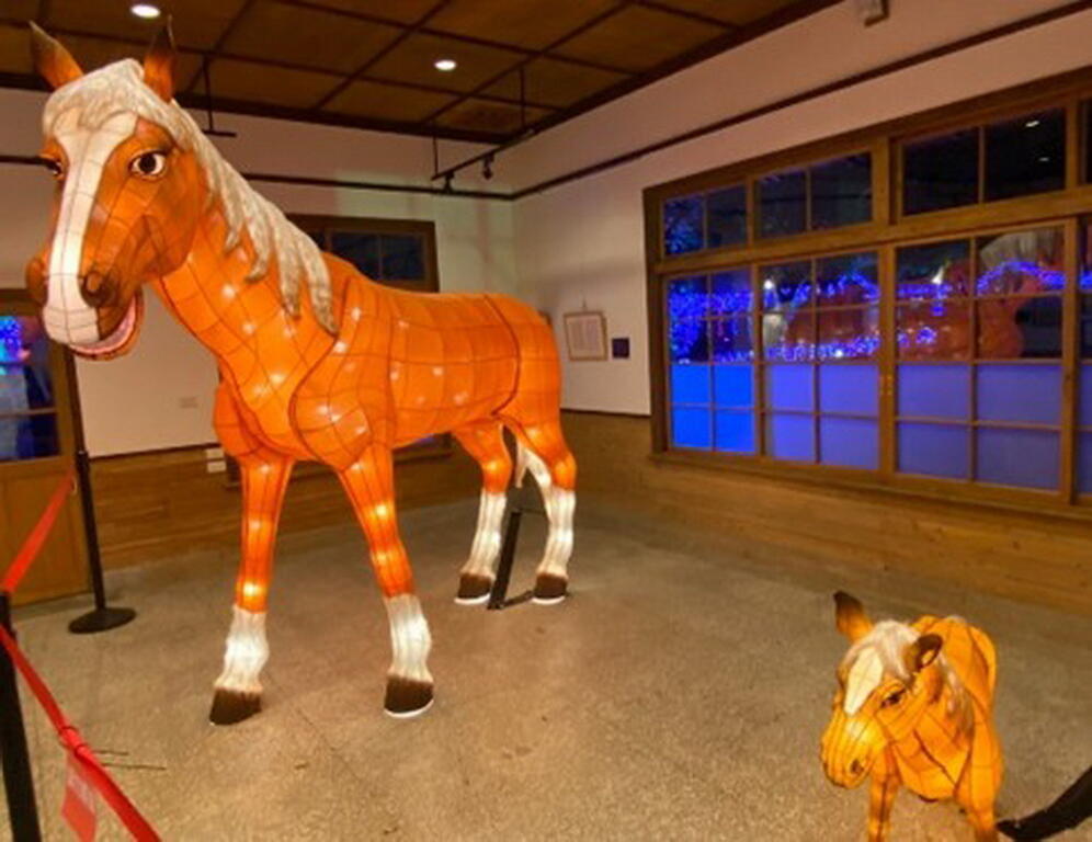 觀旅局長林筱淇指出,此次在動物狂歡嘉年華燈區內設置駿馬花燈,以世界上最大的馬及世界最小的馬為概念,結合后里馬場最著名的特色「馬」,邀請到林健兒老師製作花燈,在他的精湛手工製作下,駿馬花燈驚艷全場,從骨骼肌理、花燈布收邊縫線,甚至是眼睛上立體的睫毛,展現活靈活現的姿態與面部表情,道盡傳統花燈的工藝之美。