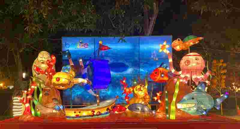 市府秘書處表示,這次台灣燈會相當國際化,我國友邦聖克里斯多福(聖啟斯)及尼維斯大使館、貝里斯大使館都力挺,除了設置「柏克利紀念鐘」(Berkeley Memorial)花燈,呈現聖國首都巴士底市(Basseterre)的地標景觀,也將聯合國教科文組織列為世界自然遺產的貝里斯「大藍洞」化身為造型花燈,映襯著生生不息海底世界生物,其中潛水者和帆船更展現樂活人生。