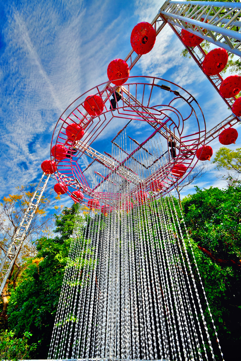 2020台灣燈會點亮台中,台中市政府在后里花花步道布置「漫遊客家庄燈區」,包括1座主燈「手護客家」、5座分別代表和平、東勢、新社、石岡、豐原主題燈,及10座象徵客家特色景觀燈組,運用藍染、竹編、鉤織等技藝結合科技燈光,超夢幻場景,讓人忍不住一直按下快門,不少民眾說,此處宛如隱藏版打卡點,串連森林園區、馬場園區,走上來才能發現的驚喜美景。