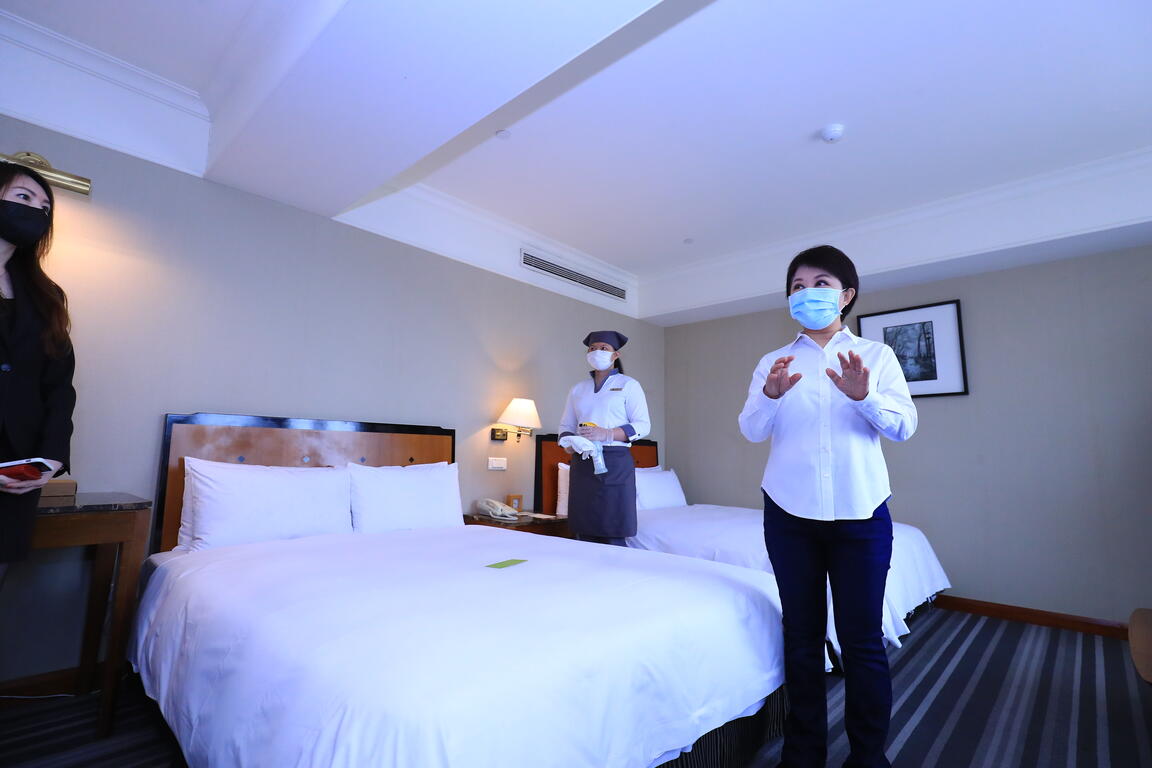市長盧秀燕今(1)日前往已獲標章的全國大飯店視察,盧市長表示,針對居家檢疫隔離者及一般民眾,市府採分流方式,居家檢疫者可在家裡或至居家檢疫替代所,居家檢疫及隔離者家屬、一般遊客則可至一般旅宿業。現在市府並推出安心旅宿認證標章,安全又衛生,請民眾放心。
