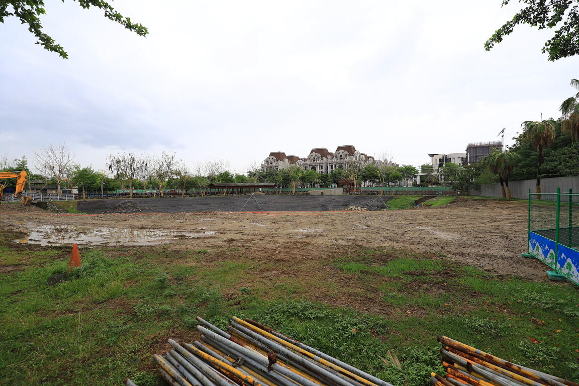 建設局長陳大田說明,第一期工程以園區北側基地及滯洪池改造為主,改善面積約2.2公頃,經費為3,066萬元,工期預計11月完工,將改善滯洪池單調空間、增加水生植物與觀水景緻,以營造適合動植物棲息的生態環境,並採用透水材質增加基地保水特性。