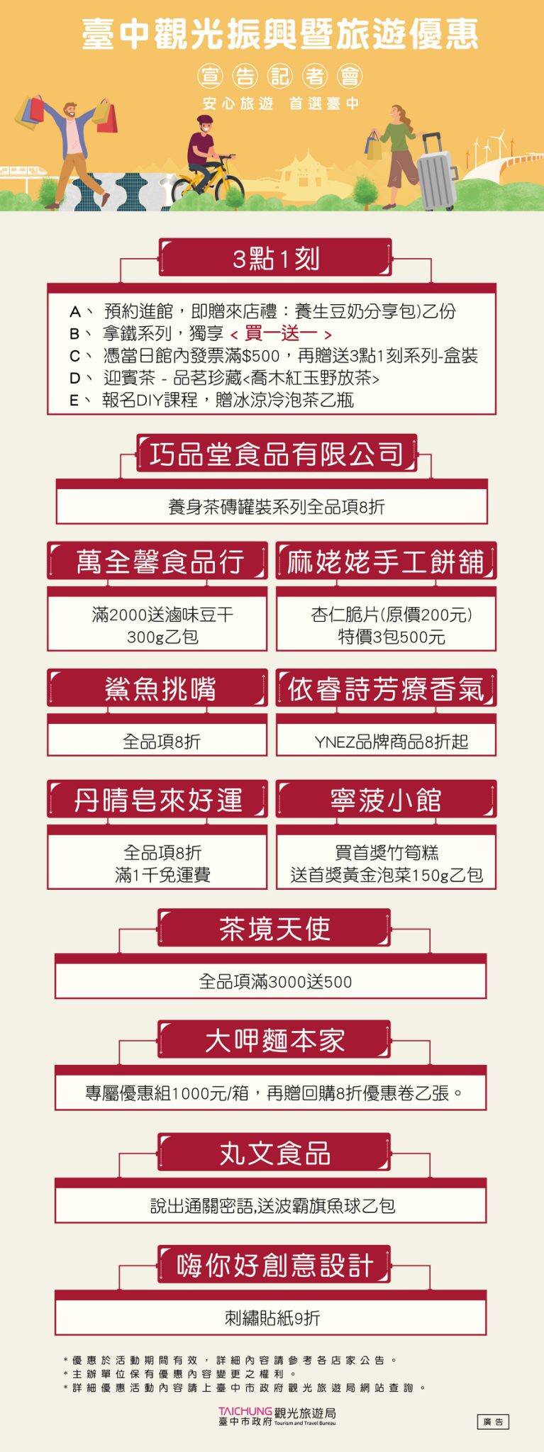 臺中觀光振興暨旅遊優惠內容