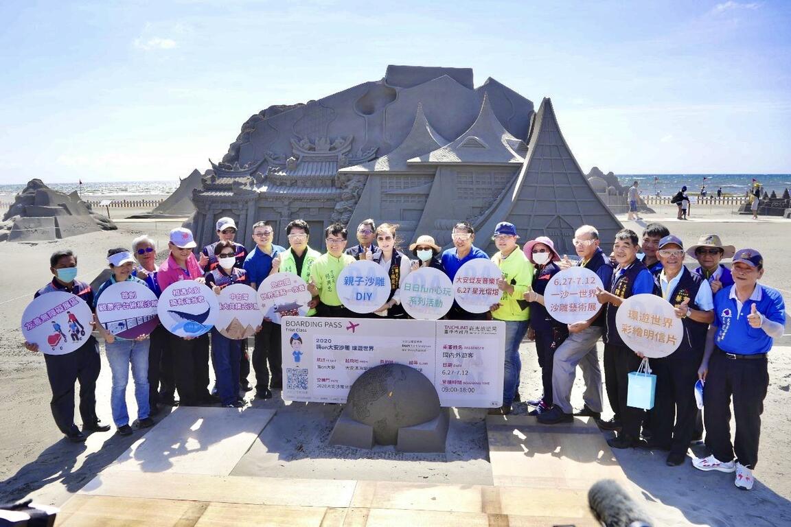 台中市政府觀光旅遊局舉辦的「2020大安沙雕音樂季」即(27)日起至7月12日在大安濱海樂園熱鬧登場,今年以「嗨ON大安環遊世界」為主題,橫跨世界五大洲,打造13個國家特色景點,有亞洲日本的淺草寺雷門與晴空塔、非洲埃及金字塔、大洋洲雪梨歌劇院、歐洲義大利比薩斜塔、美洲紐約自由女神像等,讓民眾免出國世界景點一次看!