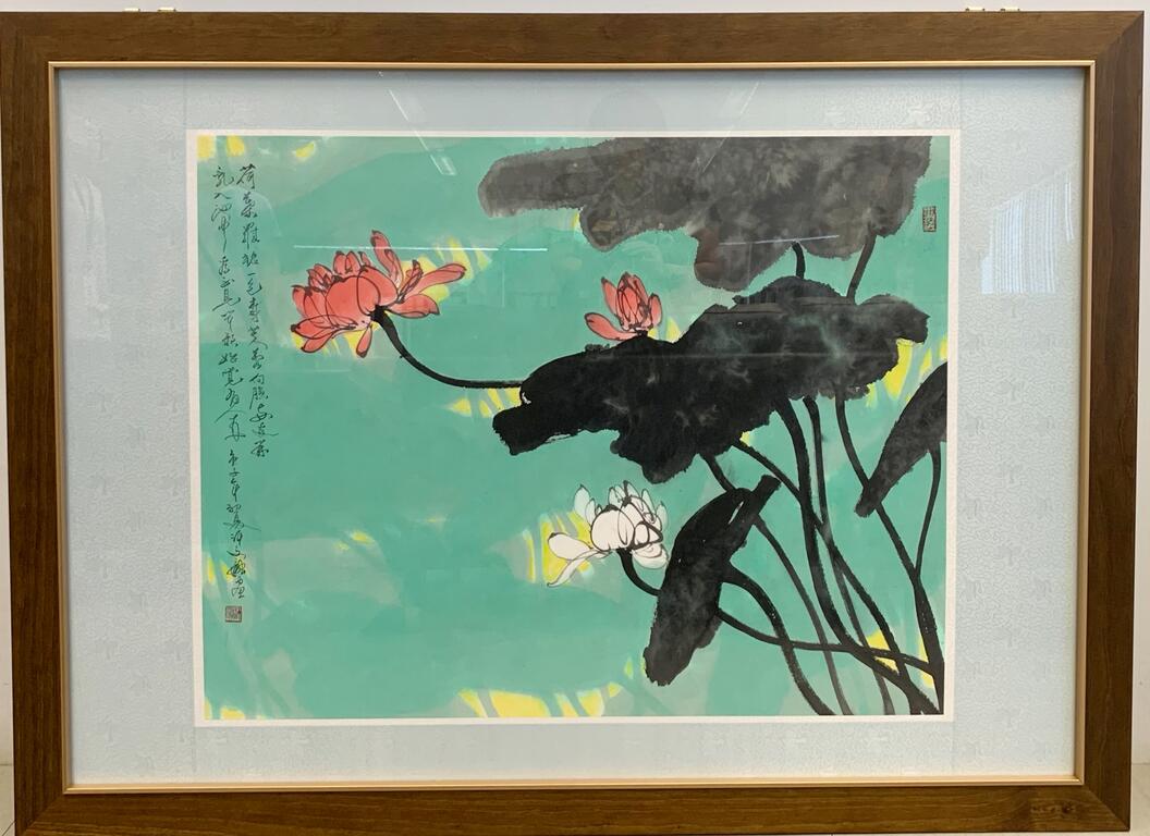 文化局指出,享譽國際的藝術家許文融,創作風格多元與多變,創作能量豐沛,他捐出今年新作《荷塘暗清香》,強調以東方氣韻為美學基底融入創作裡,其藝術創作融貫中西並運用各種媒材,以平面或立體形式呈現。