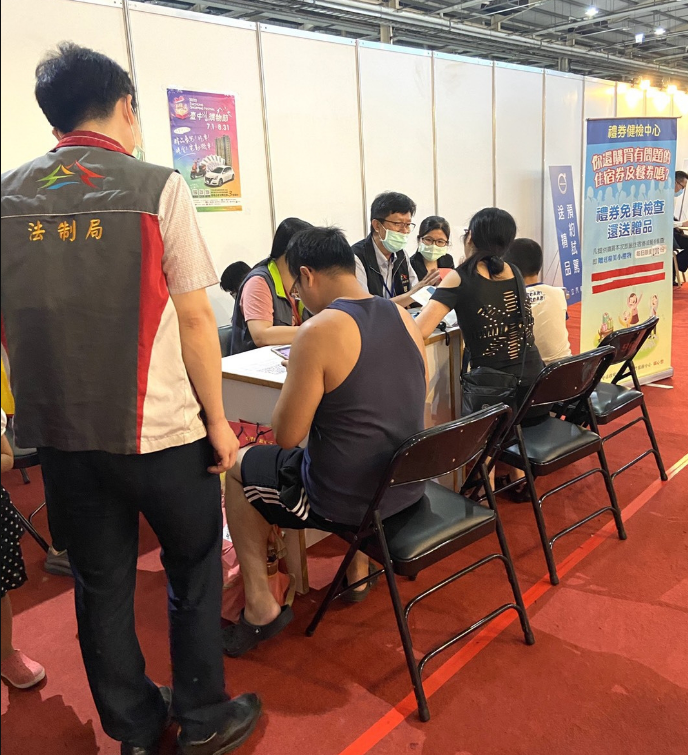 此外,市府除了禮券健檢中心的服務外,也結合了消防局、都市發展局及環境保護局分別就消防設施、走道動線及室內空氣品質等事項予以查核,更周延的確保展場環境及活動空間的安全。