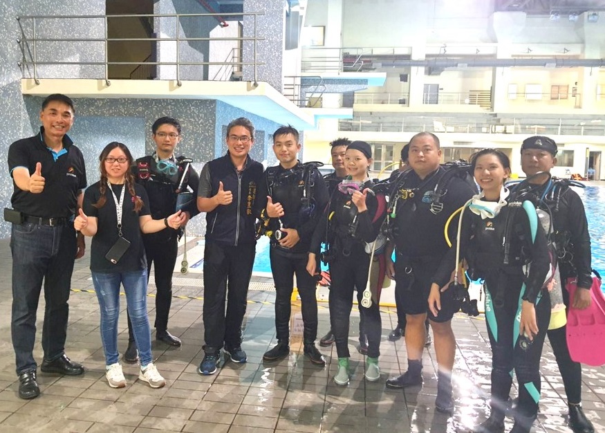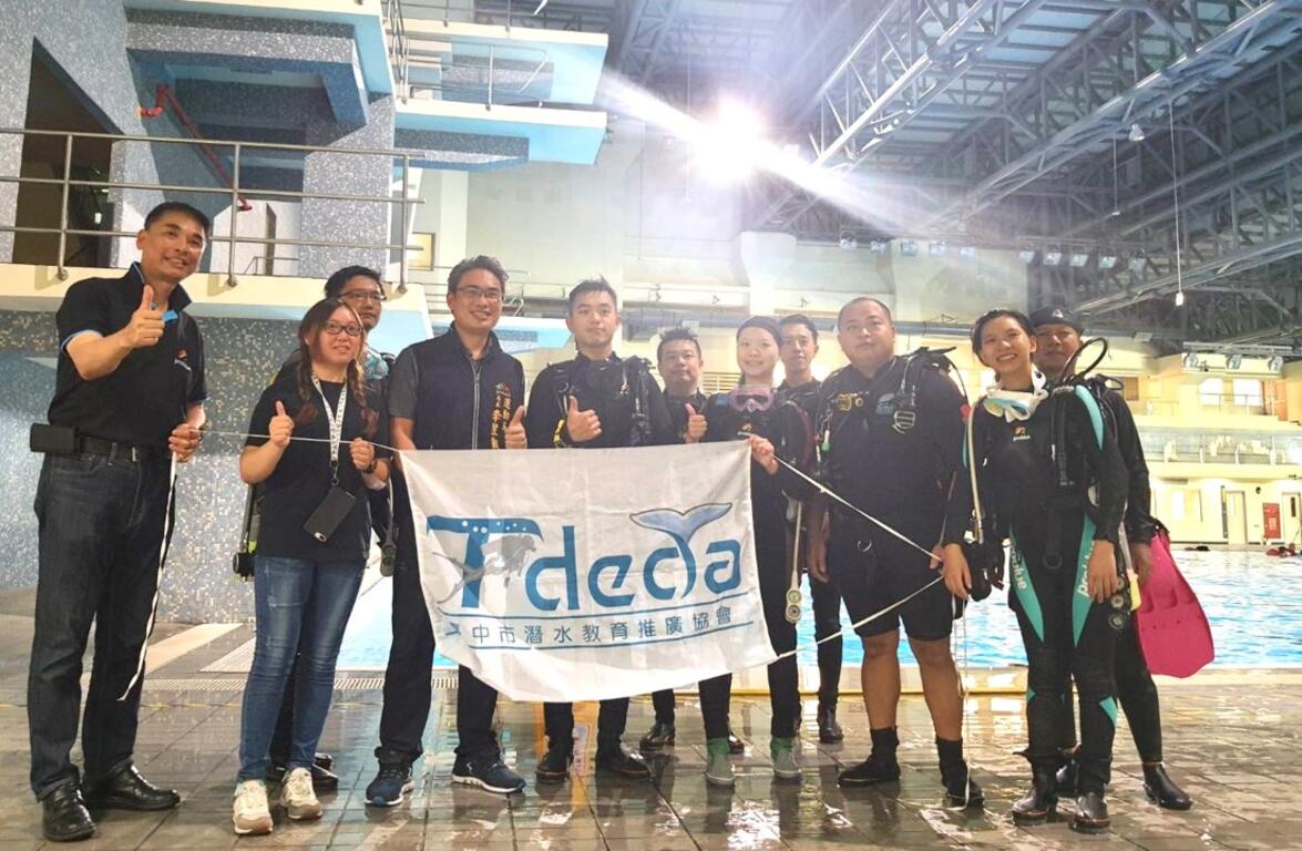 讓潛水開啟視野!為讓市民朋友認識潛水運動,進而關懷海洋生態環境,TDEDA台中市潛水教育推廣協會及台中市海上救生協會舉辦「2020徵召海洋見習生-市民潛水初體驗」,今(13)日在北區國民運動中心進行教學,台中市政府運動局長李昱叡、TDEDA台中市潛水教育推廣協會理事長賴建元出席同歡。運動局表示,活動從8月到10月止,地點遍及全市各區游泳池,共5家潛水訓練中心及6家游泳池加入,提供友善又安全的潛水體驗課程。