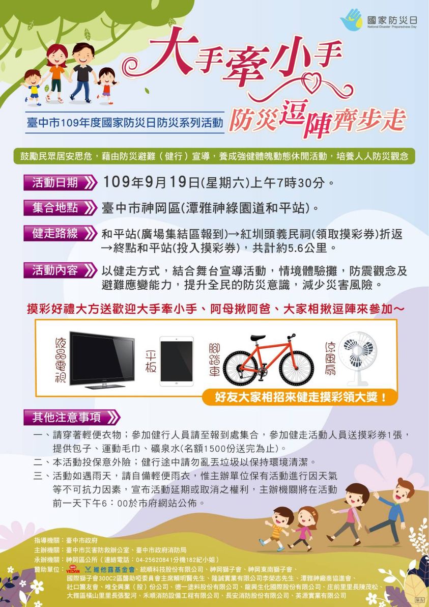 大手牽小手防災逗陣齊步走國家防災日健行活動