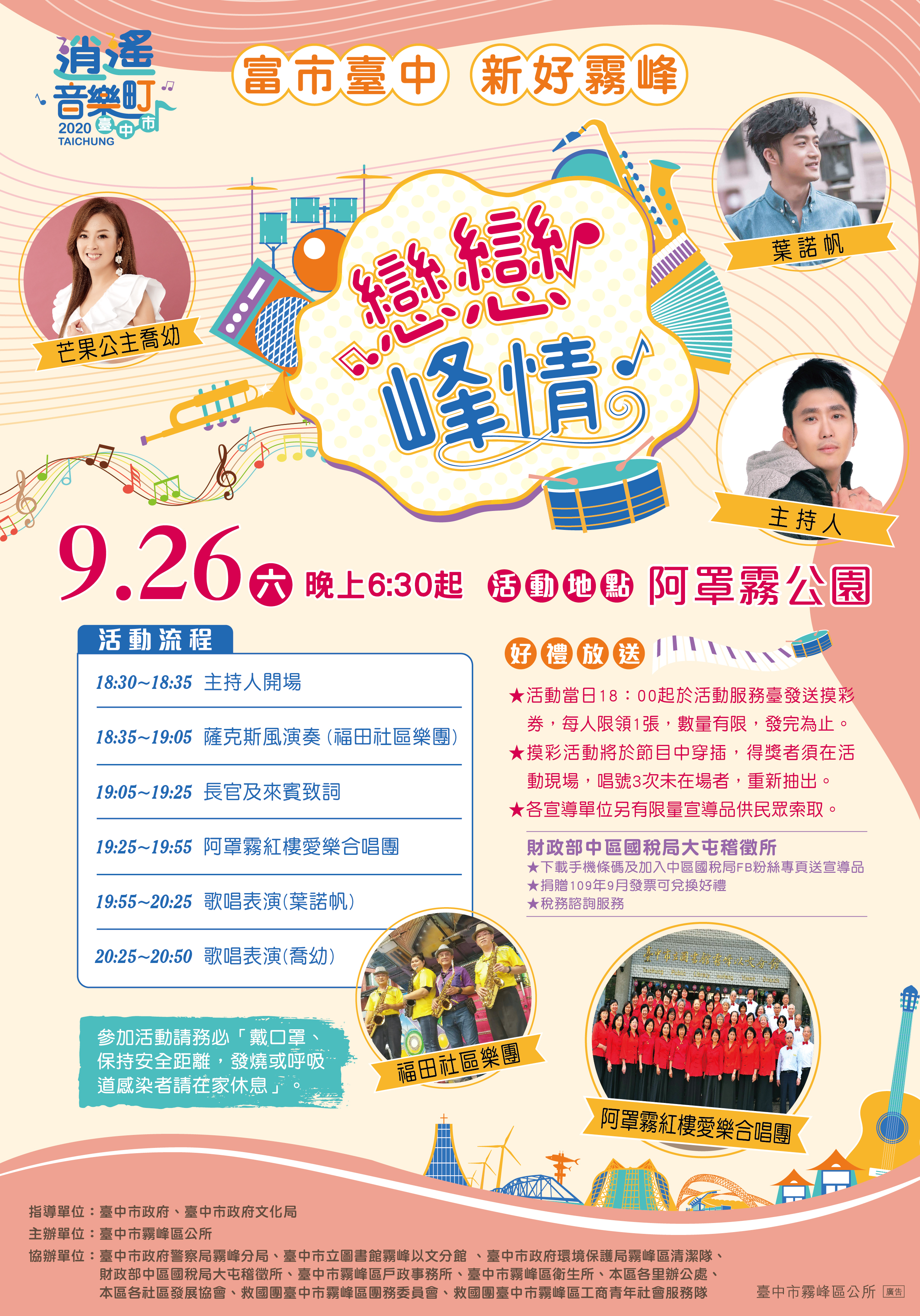 2020臺中市逍遙音樂町「戀戀峰情」活動 9月26日即將登場