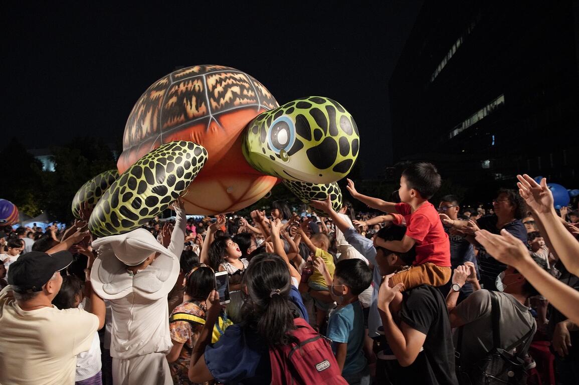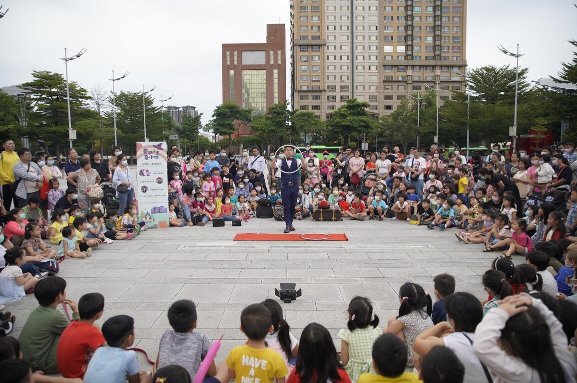 台中蘊含多元文化藝術之美,市府觀旅局今(26)日在市府前廣場舉辦「藝遊未盡台中城」活動,邀請聞名全台的「紙風車劇團」展演,現場還有特色觀光市集及抽獎,吸引超過5,000人次參與,市長盧秀燕到場同歡,和民眾共度美好周末夜,也預祝大家中秋節快樂。