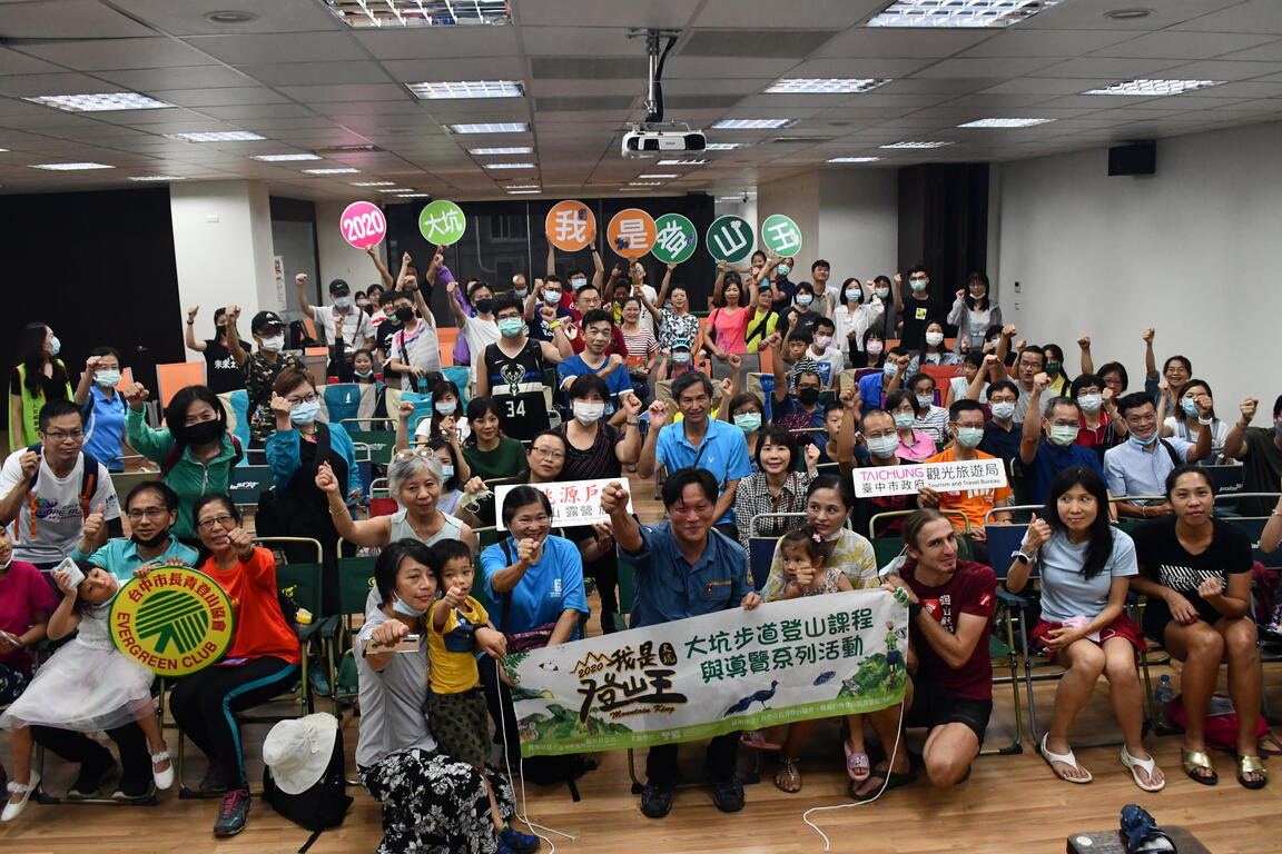 中市觀旅局長林筱淇表示,12條大坑登山步道各有特色,依難易度不同分為適合全家同遊的親子級、大眾遊憩的休閒級、強身健體的健腳級,這次「2020我是登山王」將大坑登山設計成趣味遊戲,活動期間在各步道架設生態尋寶立牌,只要跟立牌合照即可完成任務,不只能得到限量徽章還有豐富的精美禮品。感謝山友們踴躍參與,健腳級名額不到一個月就額滿,另外年底前憑活動限量徽章還可至大坑、新社的多家業者享專屬優惠。