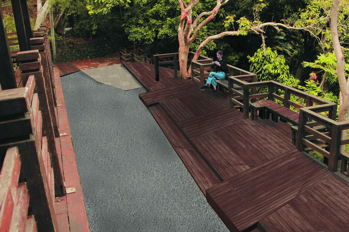 觀旅局長林筱淇表示,大坑風動石為大坑6-10號步道重要節點,亦為市民登山健行重要休憩區域,由於此區域設施經長年使用有些老舊,因此將就大坑風動石公園及附近步道相關老舊設施及損壞部分進行更新改善,並增設符合不同年齡層大、小朋友之互動式共融遊具等設施,例如樹形溜滑梯、爬網組、爬環、平衡木橋、平衡梯、平衡木樁等,另外特別針對休憩及觀景平台進行整修及新建,讓登山節點歇腳休憩空間有更為豐富的遊憩體驗。